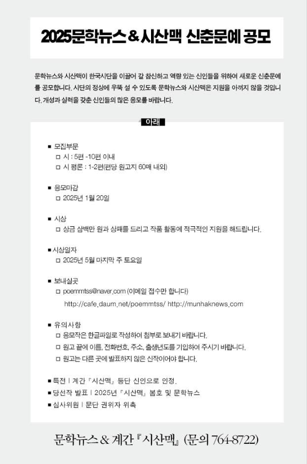 ■ 당선작 발표 2025년 『시산맥』 봄호 및 문학뉴스
