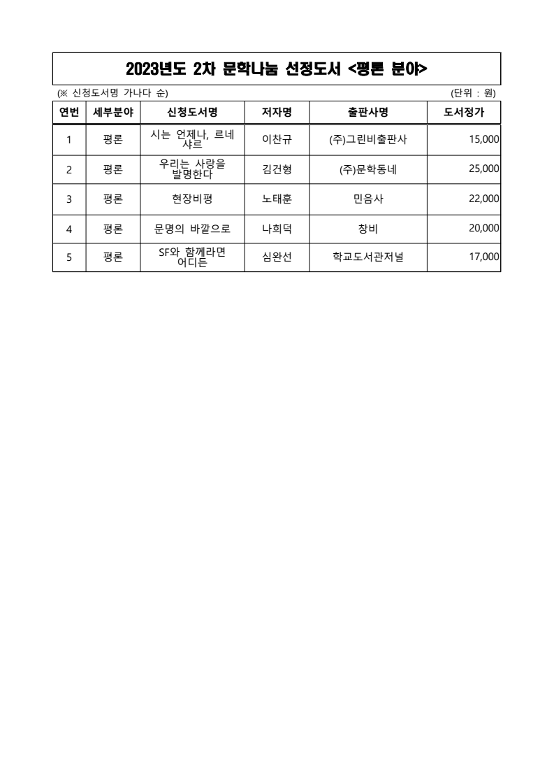 <2차 심사> 접수 마감 이후 1차 심사에서 선정된 작품을 포함해